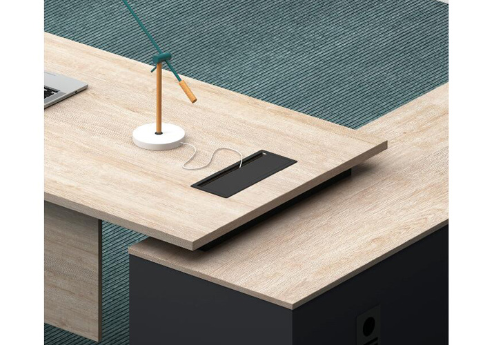 辦公桌采用硬朗的鋼架結構,從而帶來棱角分明的視覺感;精密的臺面切割技術,副臺連接布局實用的隱藏走線功能。一個充滿都市感覺的辦公空間,體驗全新的辦公生活,整體空間色彩一致。